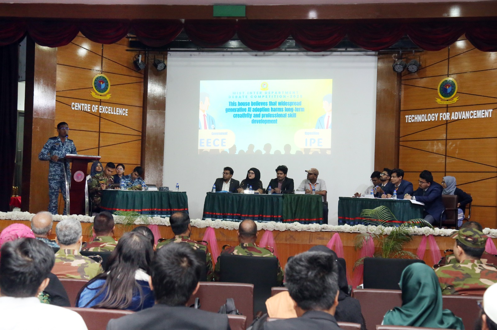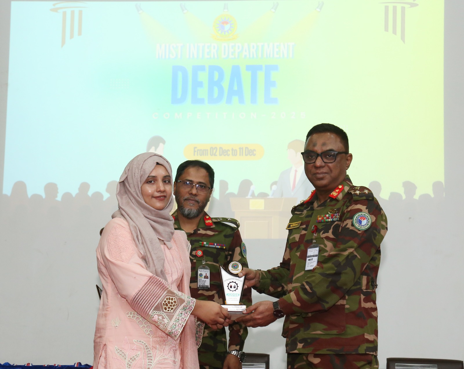 Starting on 2nd December 2025, MIST Inter-Department Debate Competition 2025 formally concluded on 11 December 2025. The Department of EECE emerged as the Champion, while the Department of IPE secured the position of Runner-up. Brigadier General Md. Awal Khan, Head of the Department of Mechanical Engineering, graced the closing ceremony as the Chief Guest. The competition was organized under the supervision of the Department of Science and Humanities, in collaboration with the MIST Debating Society.